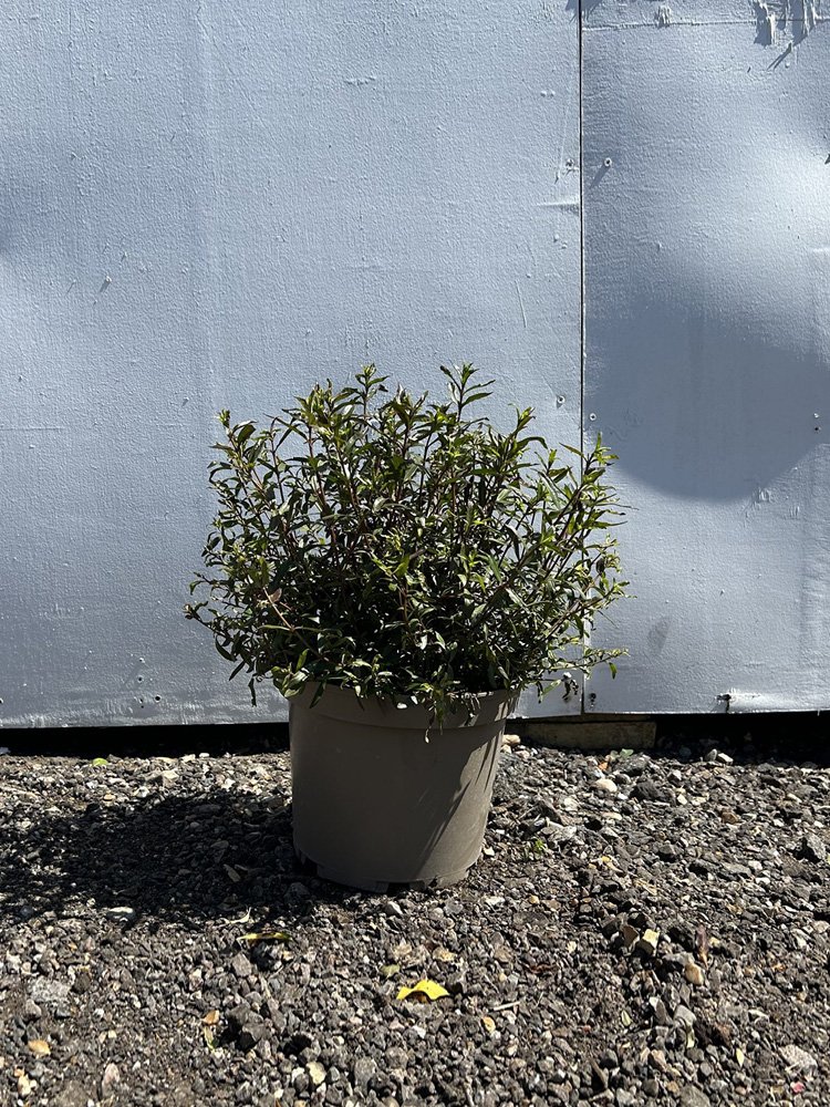 Hebe ‘Mrs Winder’ is a small bushy evergreen shrub, with narrow dark green foliage. This evergreen shrub is also known as Shrubby Veronica. During the spring, the foliage is a vibrant reddish-purple before maturing into a dark shade of bronze during the winter. In the summer, flowers bloom in a shade of violet-blue. This helps to make this evergreen shrub more eye catching, and a great choice for any garden landscape. Shrubby Veronica thrives in a variety of moist but well drained soils, with full sun or partial shade. This evergreen shrub is low maintenance and requires minimal pruning to remove dead leaves and keep the overall shape.